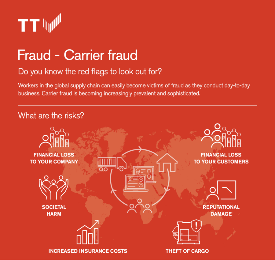 Workers in the global supply chain can easily become victims of fraud as they conduct day-to-day business. Carrier fraud is becoming increasingly prevalent and sophisticated. Today’s digital business environment has enabled fraudsters to create fictitious companies, intercept legitimate business transactions and obscure their fraudulent activity more easily reducing their risk of getting caught.